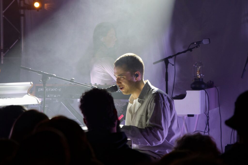 Dabei liebt es Amaru, diese akustische Expedition zu dirigieren – doch er weiß auch, dass er die Kontrolle manchmal abgeben muss, um emotionale Höhepunkte entstehen zu lassen. Der französischen Crowd schenkte er einen solchen fast spirituellen Moment bei den Tracks „lighthouse“ und „slowly dancing“ von seinem bisher einzigen Album „i always remember all of my dreams”. Keyboarderin Aleksandra setzte sich vorne ans Klavier und Drummer Gian griff zur Akustikgitarre. Spätestens als die ganze Band am vorderen Bühnenrand aufgereiht stand, übernahm bei Benjamin mit gläsernen Augen der emotionale Autopilot.